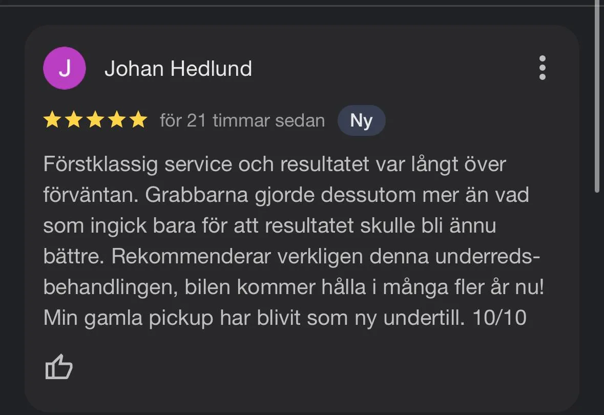 erbjuder en kostnadsfri efterkontroll efter ett år, där vi inspekterar underredet och säkerställer att rostskyddet är intakt.